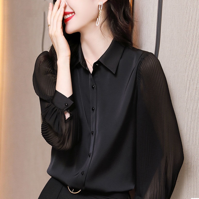 Blusa negra mangas transparentes Blusa de gasa negra Blusas Very well made.