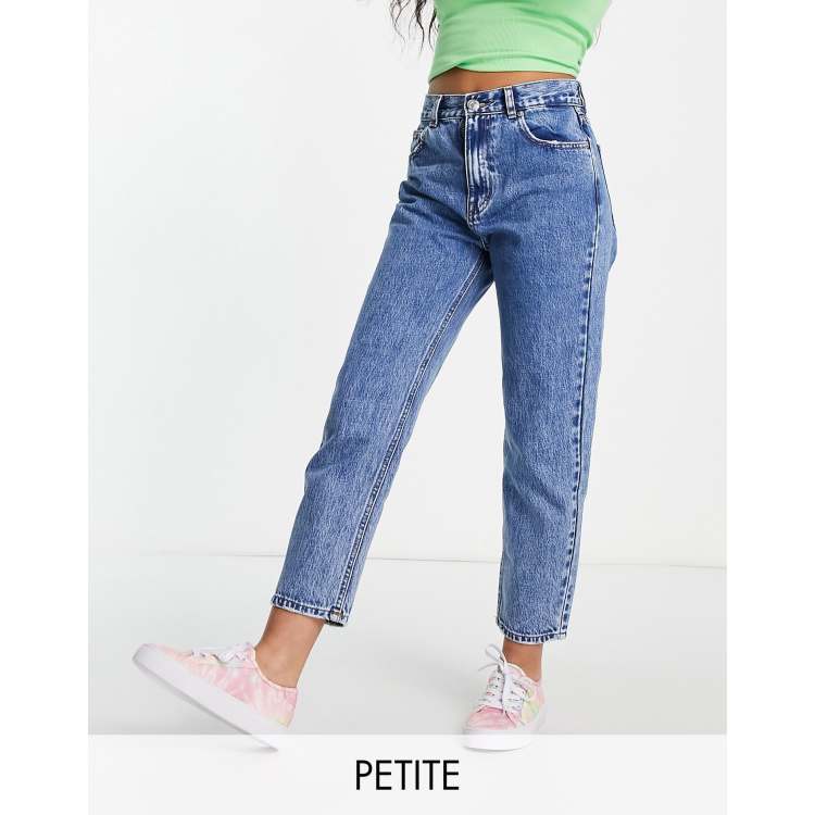 Pull Bear Petite high rise mom jeans in medium blue Very well made.