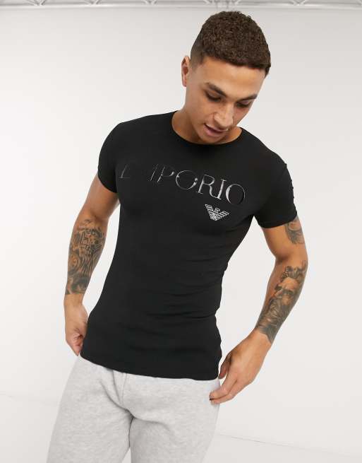 Camiseta negra confort con logo de texto de Emporio Armani Very well made.