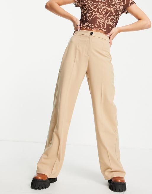 Bershka Petite wide leg slouchy dad tailored trousers in camel Very well made.