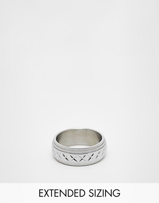 Anillo plateado de banda con dise o grabado de cruces de acero Very well made.