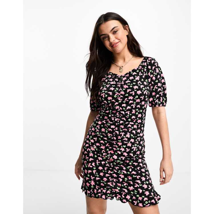 Pieces Mini jurk met pofmouwen en bloemenprint in zwart Very well made.