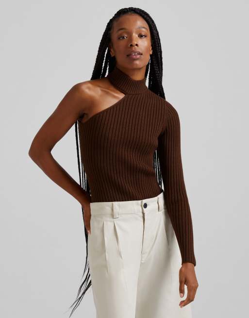 Bershka Trui met enkele mouw in bruin Very well made.