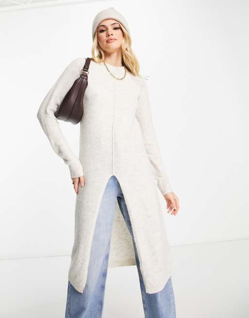 Vero Moda Lange trui met split aan de voorkant in lichtgrijs Very well made.