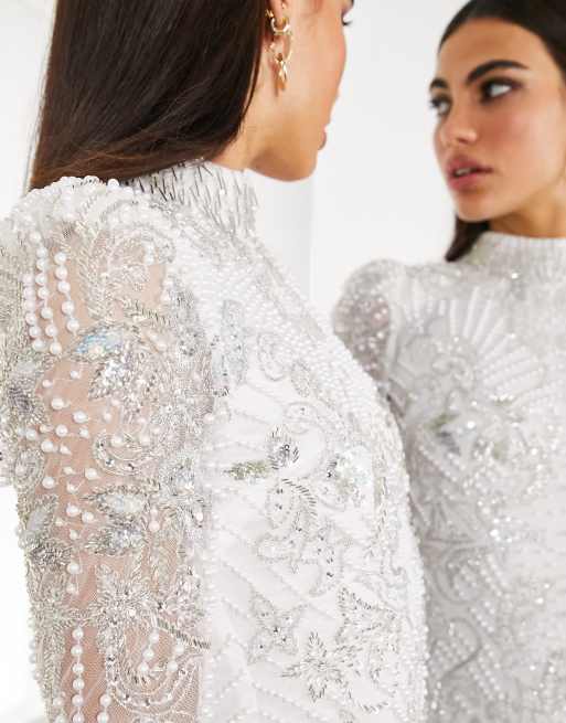 ASOS Gebloemde Mini jurk Met Parels En Lovertjes En Zoom Met Veren Very well made.