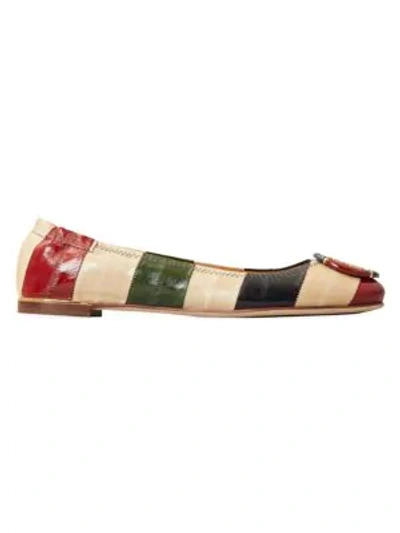 Tory Burch Minnie Colorblock Stripe Leather Ballet Flats In New Very well made.