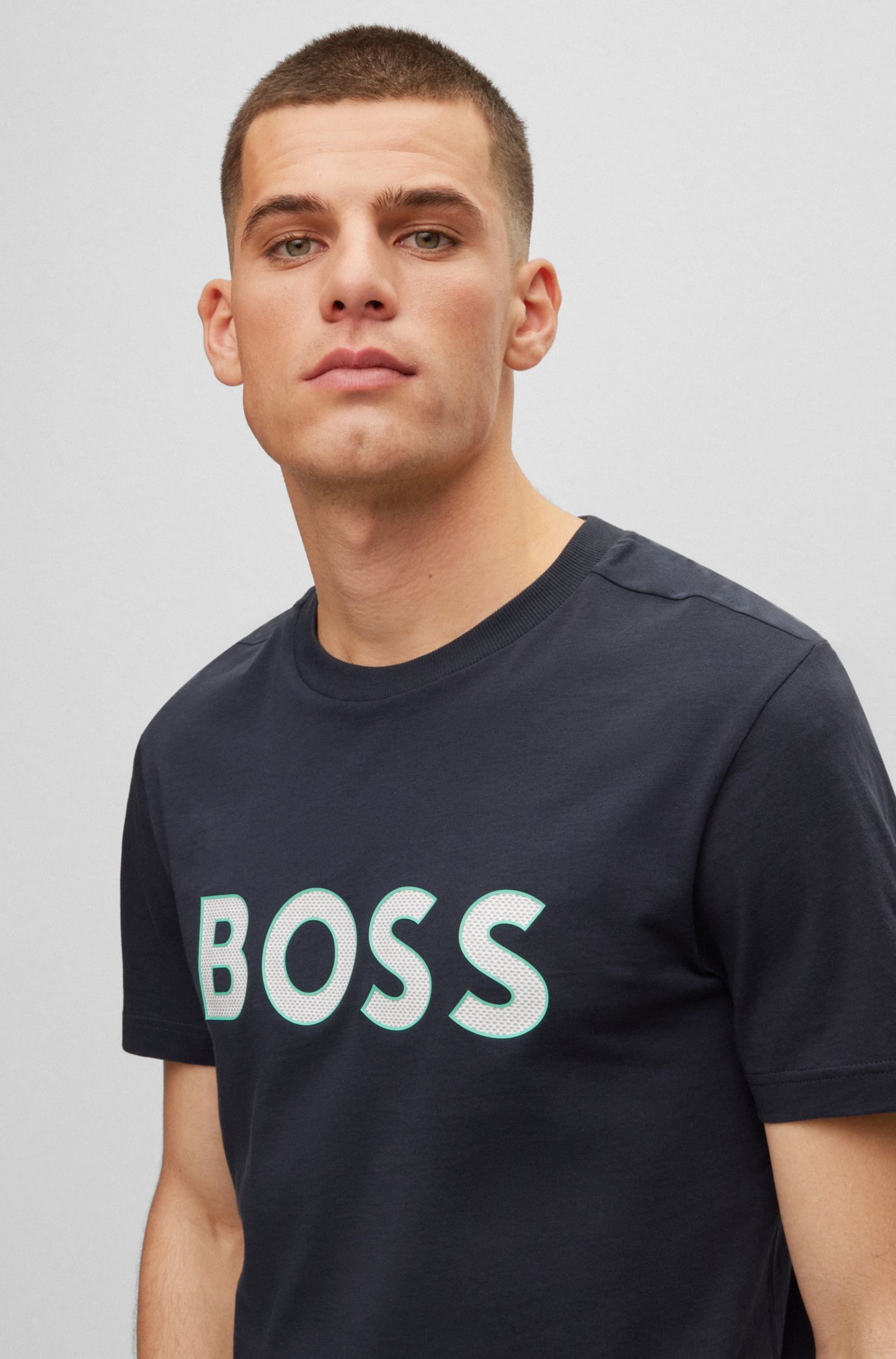 BOSS Crew neck T shirt in cotton jersey with logo print Very well made.