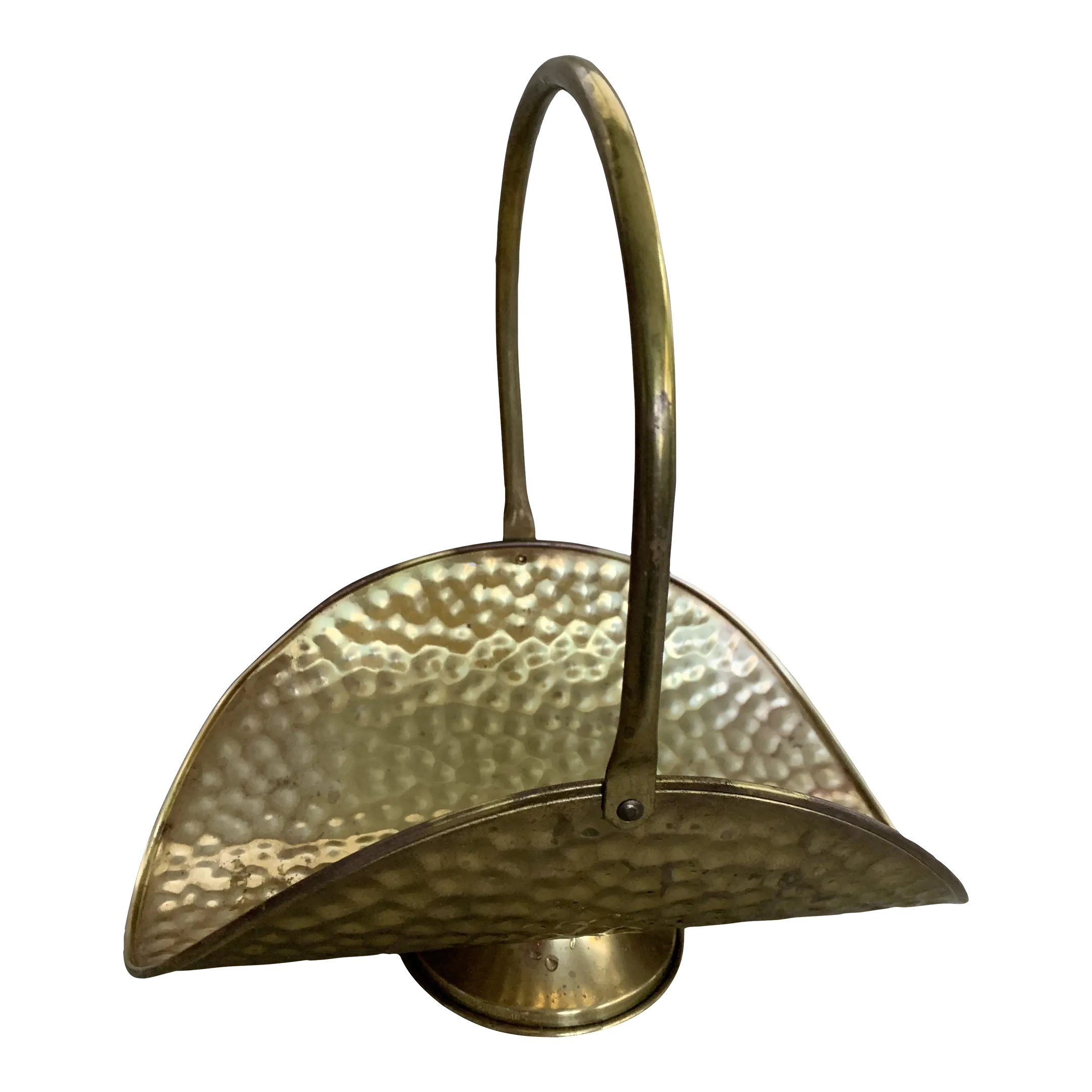 Vintage Set of 2 Small Hammered Brass Log Basket Made in India Very well made.