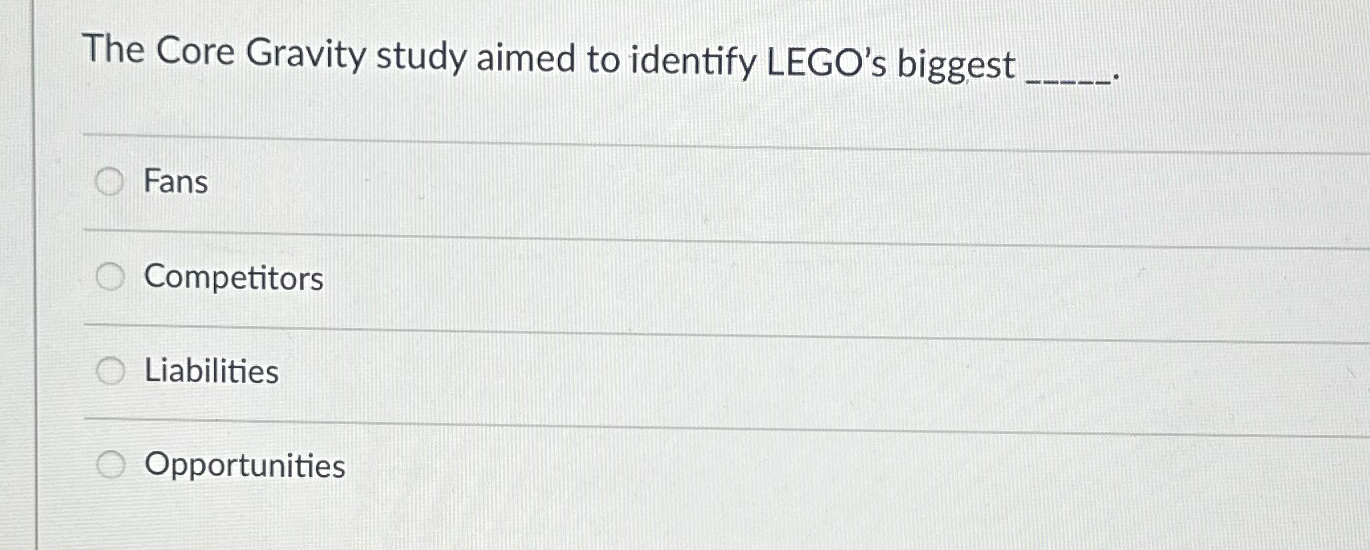Solved The Core Gravity study aimed to identify LEGO s Chegg Very well made.