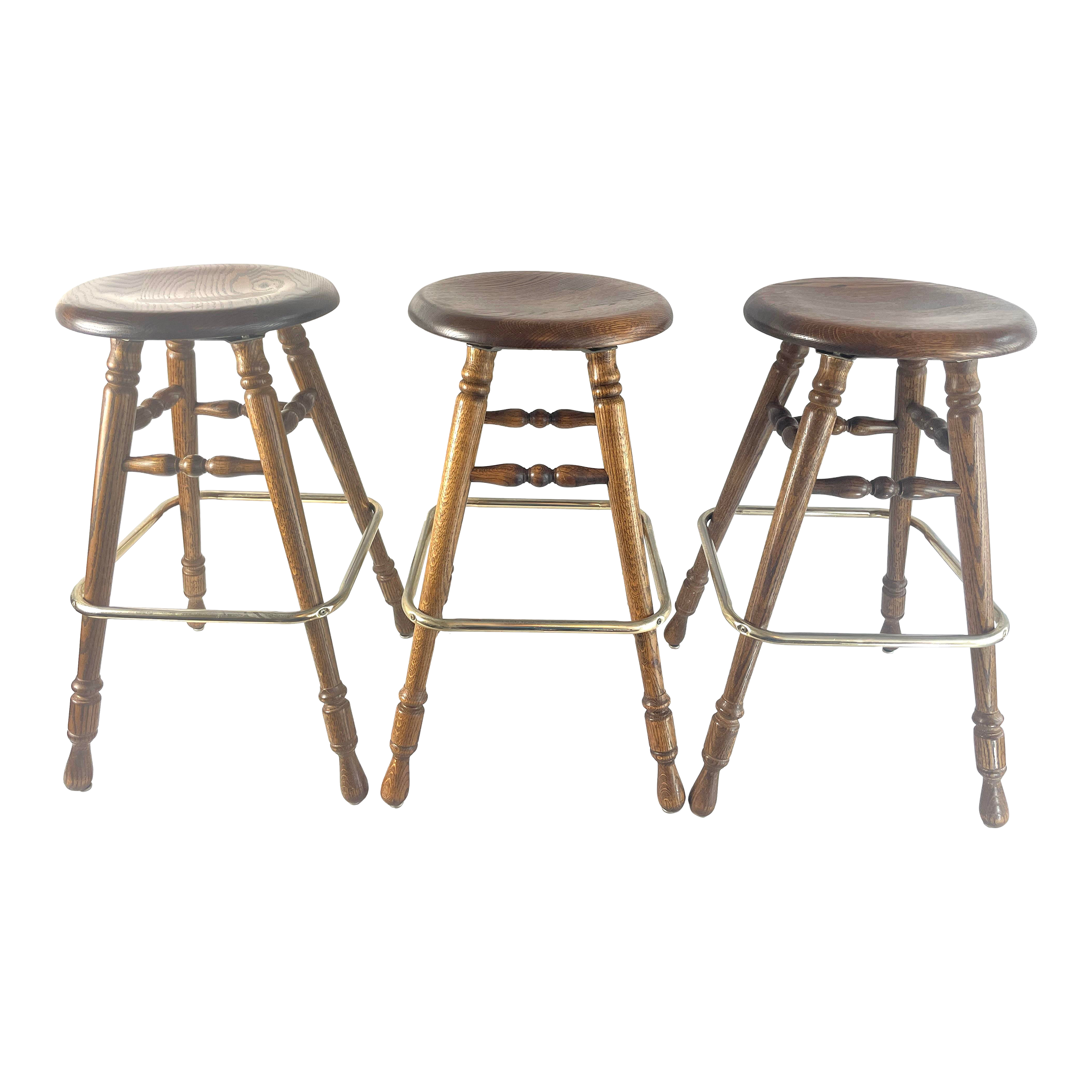 Vintage Country Style Swiveling Oak and Metal Barstools Set of 3 Very well made.