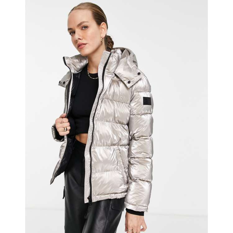 Calvin Klein high shine hooded padded jacket in smoke ASOS Very well made.