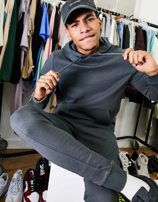 ASOS DESIGN tracksuit with hoodie and skinny joggers in charcoal Very well made.