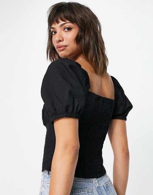 Other Stories linen square neck puff sleeve top in black ASOS Very well made.