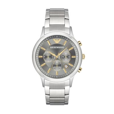 Emporio Armani Mens Dress Chronograph Watch Black Dial Stainless Very well made.