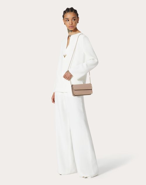 Valentino Garavani Rockstud Grainy Calfskin Chain Pouch in Natural Very well made.