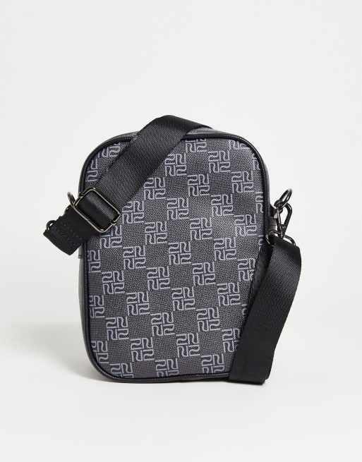 Mens River Island Black RI monogram cross body flight bag Very well made.