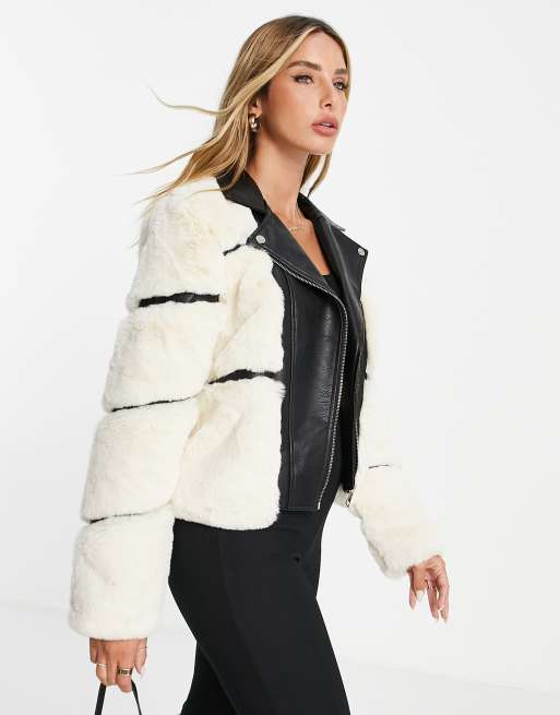GUESS Originals Veste biker en fausse fourrure Femme Very well made.