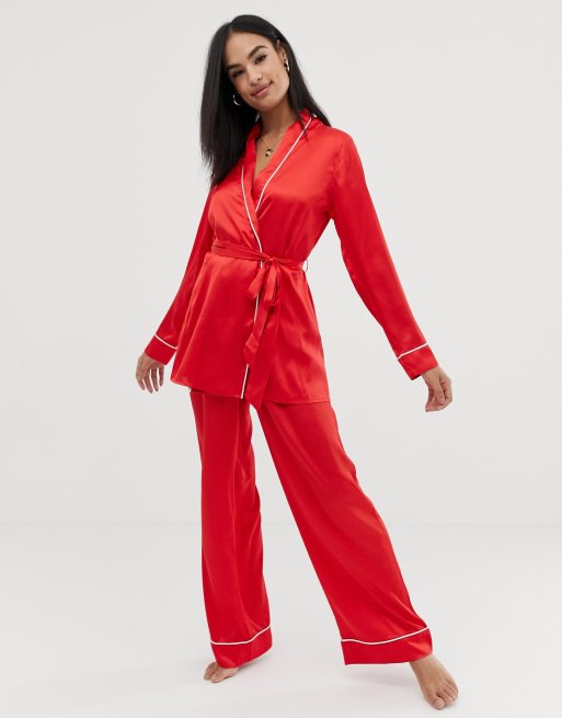ASOS DESIGN satin wrap pyjama pants set Very well made.