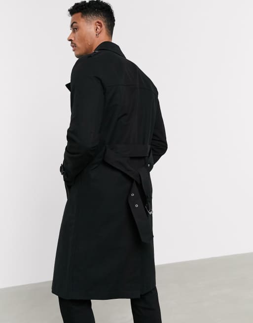 Homme Fursac Trench Noir En Toile De Coton D perlante Manteaux Very well made.