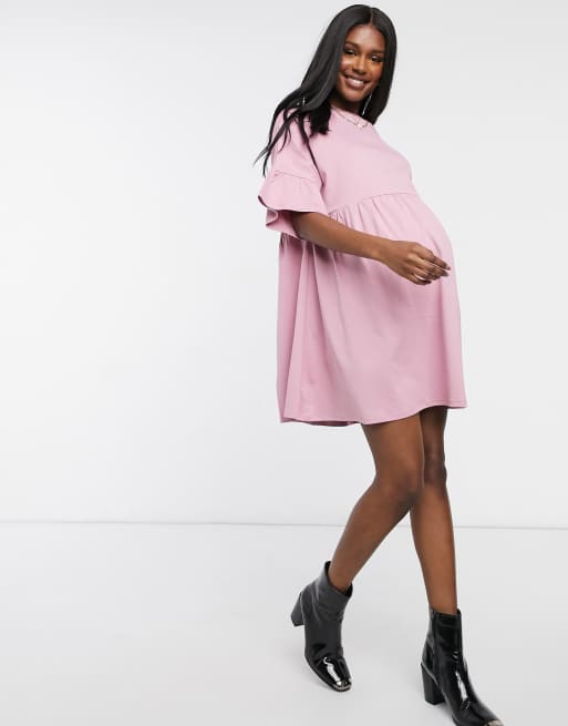Exclusivit ASOS DESIGN Maternit Robe babydoll oversize manches volant es Vieux rose Very well made.